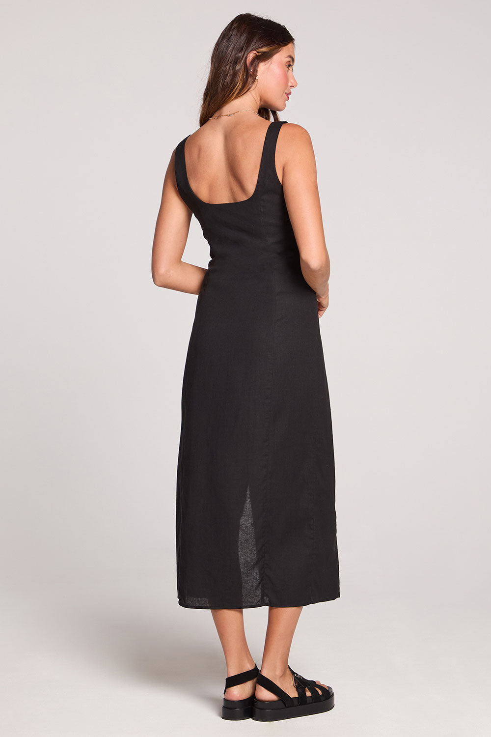 A flattering scoop neck keeps things relaxed and approachable, while a subtle slit adds movement and modern edge to the midi silhouette.